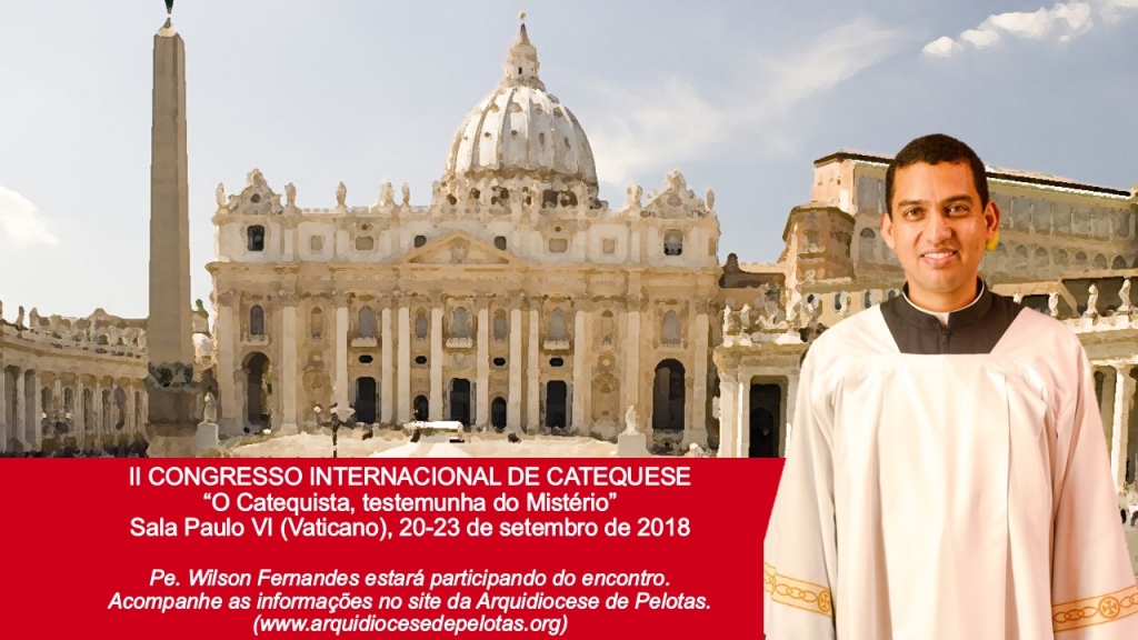O padre Wilson Fernandes vai representar a Arquidiocese de Pelotas no II Congresso Internacional de Catequese, que vai acontecer entre os dias 20 e 23 de setembro na sala Pulo VI, no Vaticano.